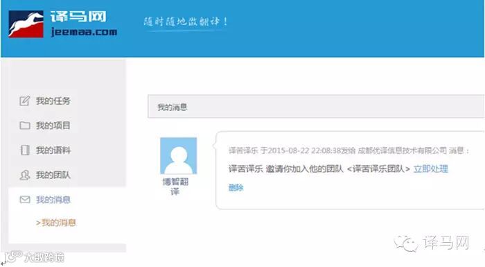 在创建项目的最后一步“设定并启动任务”,将文件分配给团队成员。启动项目后,参与项目的人员会在“我的 消息”中收到提示信息,并开始进行翻译;