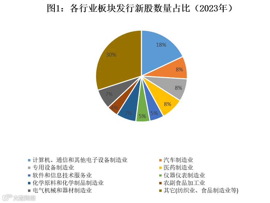 截至本周,2023年累计上市新股76只。从行业分布来看,计算机、通信和其他电子设备制造业公司数量占比最高,约占当年上市总数的18%。其次汽车制造业(8%)、医药制造业(8%)、专用设备制造业(8%),这三大板块新股合计占比达24%