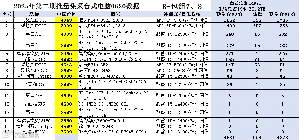 以上数据均仅限批量集采,仅供参考(不含统框采,线下,统采,邀标等)