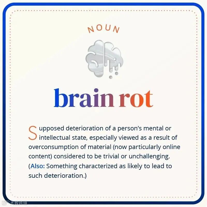 当地时间2024年12月2日,英国《牛津英语词典》公布年度词汇——“脑腐”(brain rot),这并不是指大脑产生生理性疾病,而是指思想的腐化,反映出人们对网络上“垃圾信息”盛行的担忧。