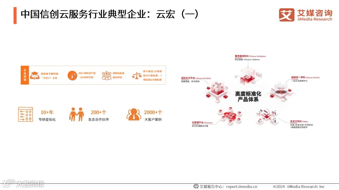 云宏专注云计算关键技术自主研发十余年,坚持国产、自主、可控的发展道路,是国内早期掌握自主知识产权的虚拟化技术团队之一,具备无感替换国际行业巨头的技术实力,入选国家级专精特新“小巨人”企业。云宏拥有自主研发知识产权和高度标准化的产品体系,主要包括安全可控的CNware WinSphere 服务器虚拟化软件及CNware WinStack 虚拟化云平台、WinCloud 云管理平台、CNware WinHCI 超融合一体机、CNBox 安全文档云等系列产品。