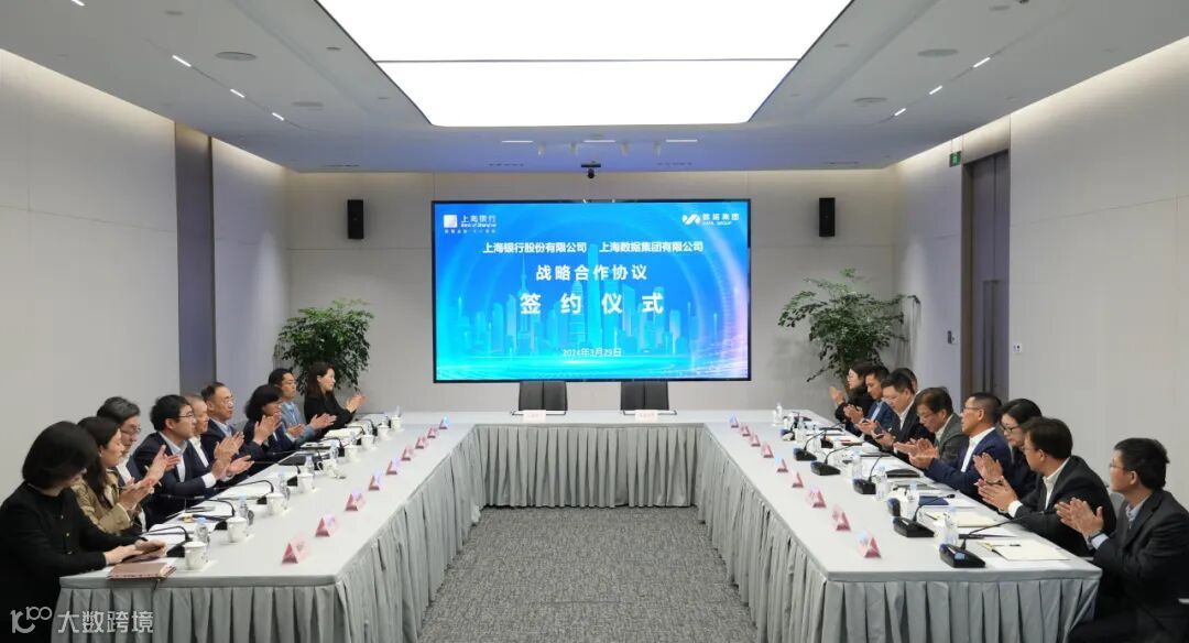 3月29日,数据集团与上海银行签署战略合作协议,在数据集团董事长吴建雄、上海银行董事长金煜见证下,数据集团总裁朱宗尧、上海银行副行长胡德斌代表双方签约。数据集团副总裁李小山主持签约仪式。