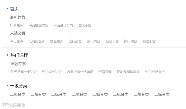 栏目导航支持更多子级分类样式,选择样式2、3、4均可以再进一步选择展开的子级分类样式