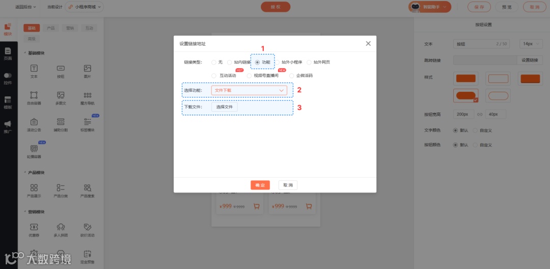 丰富小程序商城跳转链接类型,新增【文件下载】,支持商家自由上传文档、图片等文件给商城访客下载。