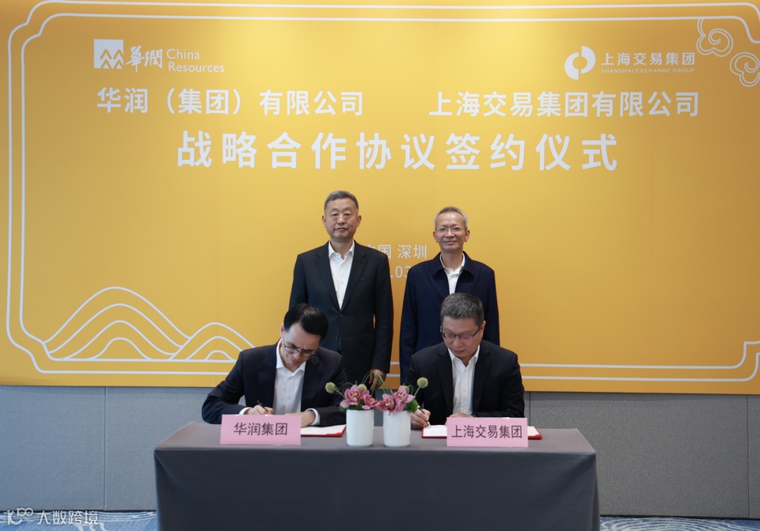 上海交易集团与华润(集团)有限公司(以下简称“华润集团”)战略合作协议签约仪式在深圳举行。华润集团董事长王祥明接待上海交易集团党委书记、董事长余旭峰一行,双方就进一步加强战略合作进行了会谈交流。
