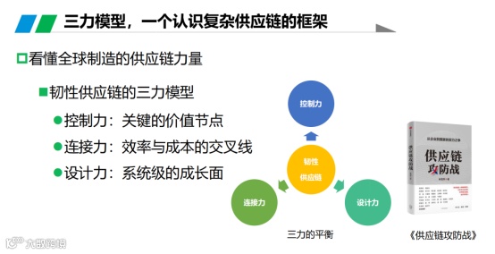 应该怎样认识供应链?每个行业对此都有不同的说法。在认识供应链时,可以考虑使用3种不同力量的模型来看待供应链的消涨的过程。“控制力”是其中一方面,并且为大家所熟知。很多关于“卡脖子”的谈判、攻关的工程的其实都是在为控制力而战,在一些关键的价值节点,比如人工智能的芯片,都能感受到一场关于未来数字经济的控制力之争。