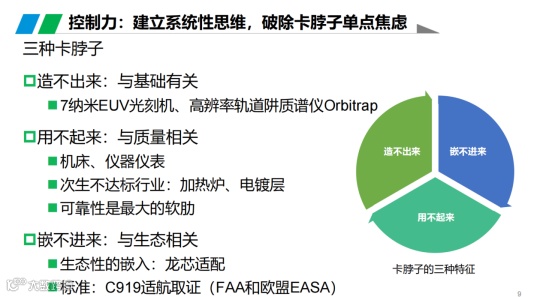 因此需要建立一个系统性的思维,而不是单一地去看仪器仪表为什么“卡脖子”,机床为什么“卡脖子”,很多时候造成产品“卡脖子”的因素不仅仅局限于产品本身。