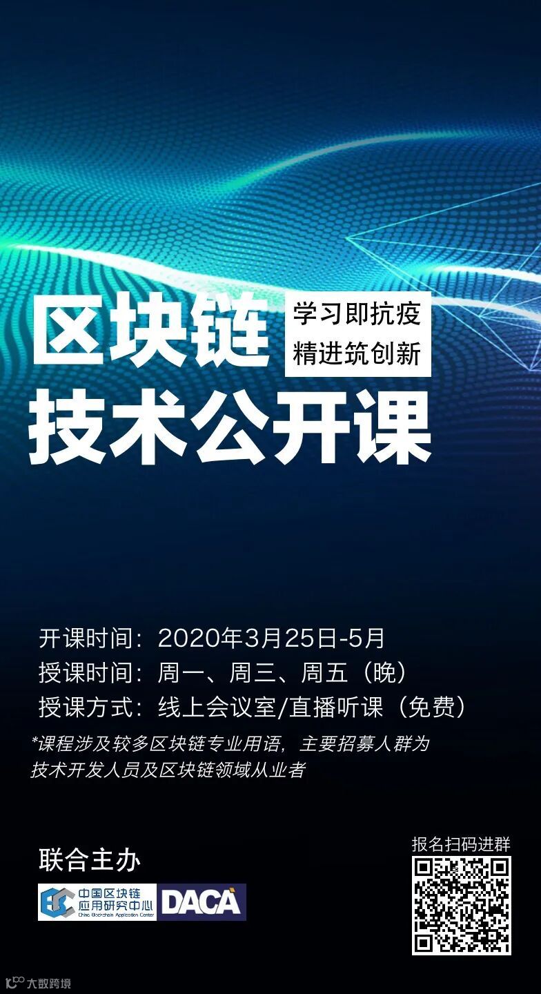 因此,由中国区块链应用研究中心与亚洲区块链协会(DACA)联合主办、太一云与亦来云协办的区块链技术公开课应运而生。现在仍在疫情时期,高纯度的区块链课程将从线下搬至线上,也借此开放给更多想要学习了解区块链的人,邀请大家“学习即抗疫”,一起“精进筑创新”。如果你想更直接参与全球抗疫,也可加入文章底部活动,为这场战“疫”注入更多力量。此次课程不止介绍区块链原理和技术逻辑,还将深入区块链应用案例,为大家层层剖析,将原本晦涩难懂的区块链知识用简洁明了的方式呈现出来。课程内容如下: