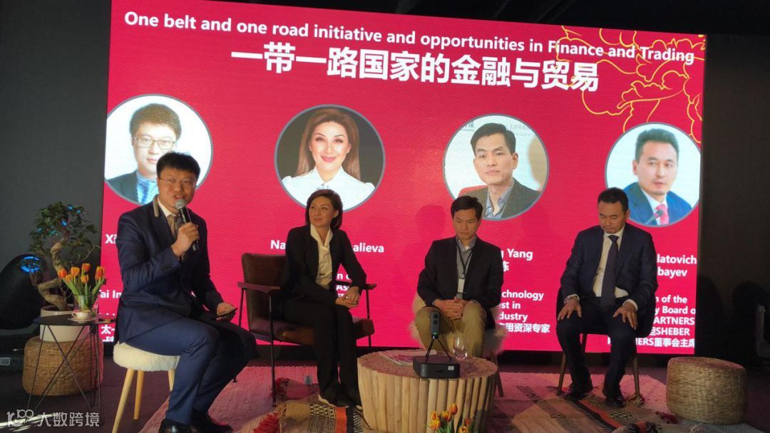 圆桌论坛主持人太一产业研究院院长、太一硅谷实验室首席执行官郭小川(左一);亚洲银行董事长Nazira Beishenalieva(左二);哈萨克斯坦SHEBER PARTNERS董事会主席Yeraly Bolatovich Sauranbayev(右一);能源区块链创新应用资深专家杨国栋(右二)