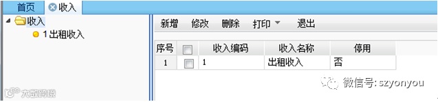 6、依次点击“基础设置”-“收付结算设置”-“收入”按钮,建立一个名称为“出租收入”收入:
