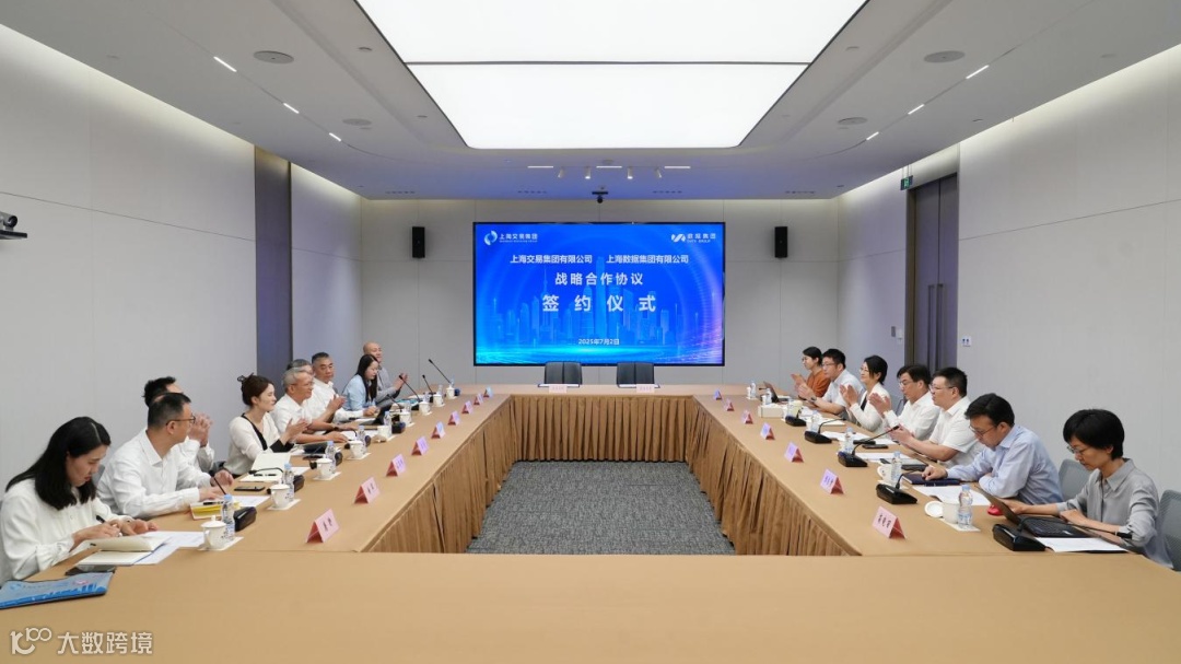 7月2日上午,上海交易集团与上海数据集团(以下简称“数据集团”)举行战略合作协议签约仪式。上海交易集团党委书记、董事长余旭峰,党委委员、副总裁赵红光;数据集团党委书记、董事长吴建雄,副总裁李小山出席仪式,双方围绕加强资源共享、推动高质量发展等话题进行交流座谈。