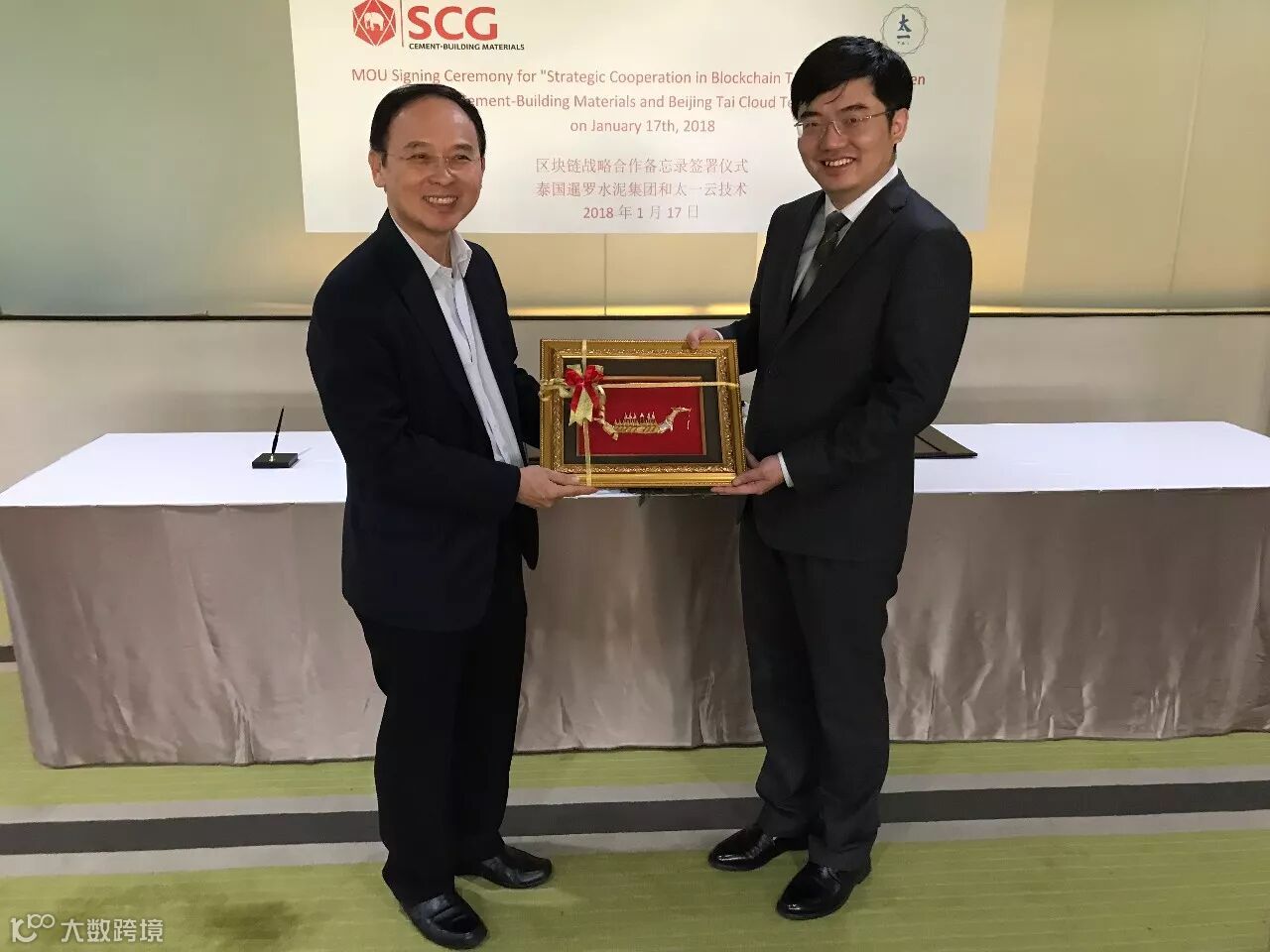 1月17日,中国区块链应用研究中心理事长、太一云董事长邓迪到访泰国SCG集团,这是继泰国SCG集团去年三次造访太一云北京总部后的回访。泰国SCG集团建材和数字业务副总裁Nithi、泰国SCG包装集团总裁 Tanawong、泰国SCG集团行政副总裁Yuttana Jiamtragan等高层领导热情招待了太一云团队,并在只接待贵宾的guest house进行宴请。之后,双方就合作进行了重点讨论,并最终签署了战略合作协议。