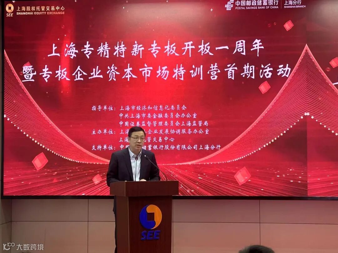 为深入贯彻《关于高质量建设区域性股权市场“专精特新”专板的指导意见》(证监办函〔2022〕840号)要求,积极响应国家培育专精特新企业的战略部署,助力上海专精特新专板企业借助资本市场实现高质量发展,2025年3月25日,在上海市经济和信息化委员会、中共上海市委金融委员会办公室和中国证券监督管理委员会上海监管局的精心指导下,由上海市促进中小企业发展协调办公室与上海股权托管交易中心联合主办,中国邮政储蓄银行上海分行倾力支持的上海专精特新专板开板一周年暨上海专精特新专板资本市场特训营首期活动在上海股权托管交易中心隆重举行。
