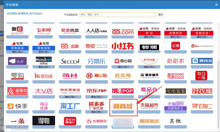点击左上角“添加网店”,在平台类型里选择唯商城。