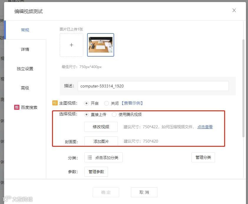 2、开启功能后,对应信息库编辑中可上传或使用腾讯视频。
