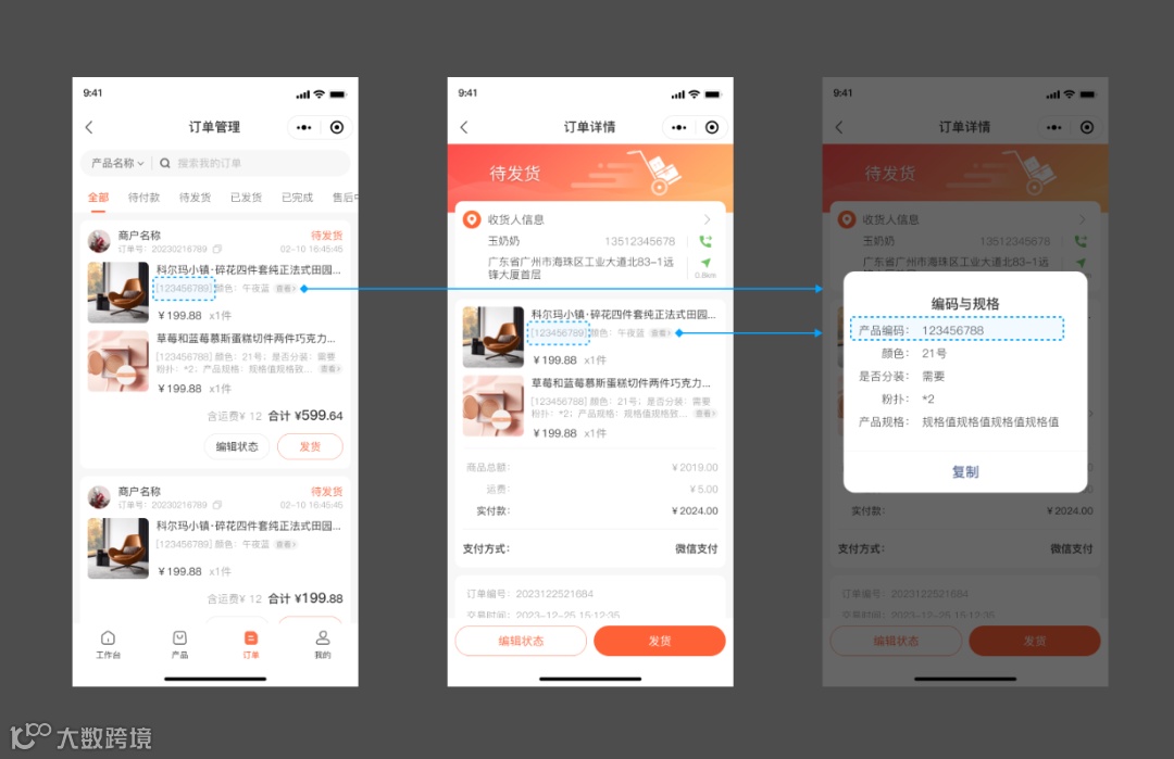 商家助手支持展示订单中产品的产品编码,帮助商家快速识别产品,提升订单管理效率。