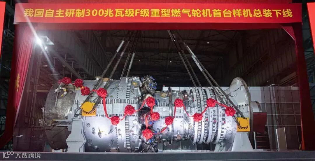 ▲2月28日,我国自主研制的300兆瓦级F级重型燃气轮机首台样机总装下线