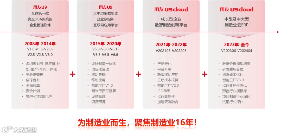 U9 cloud,作为大中型离散制造企业的云ERP平台,已经深耕制造业16年之久。从最初的多组织财务、供应链、计划、生产、车间一体化解决方案,到如今基于大数据、云计算、AI等先进技术的智能化应用,U9 cloud始终站在技术前沿,引领着制造业的数智化潮流。