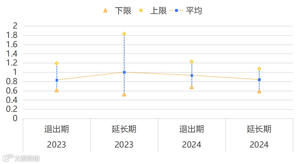 按照基金所在的不同交易阶段来看,2024年延长期基金NAV折扣率在58.85%-107.42%之间浮动,平均值为84.2%,相较于退出期的93.35%有所下降。