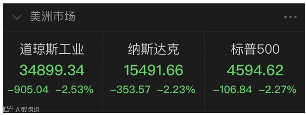 不仅美股,欧股股市也遭遇重挫,英国富时100跌幅3.64%,法国CAC40跌幅4.75%,德国DAX跌幅4.15,俄罗斯MOEX跌幅3.47%。