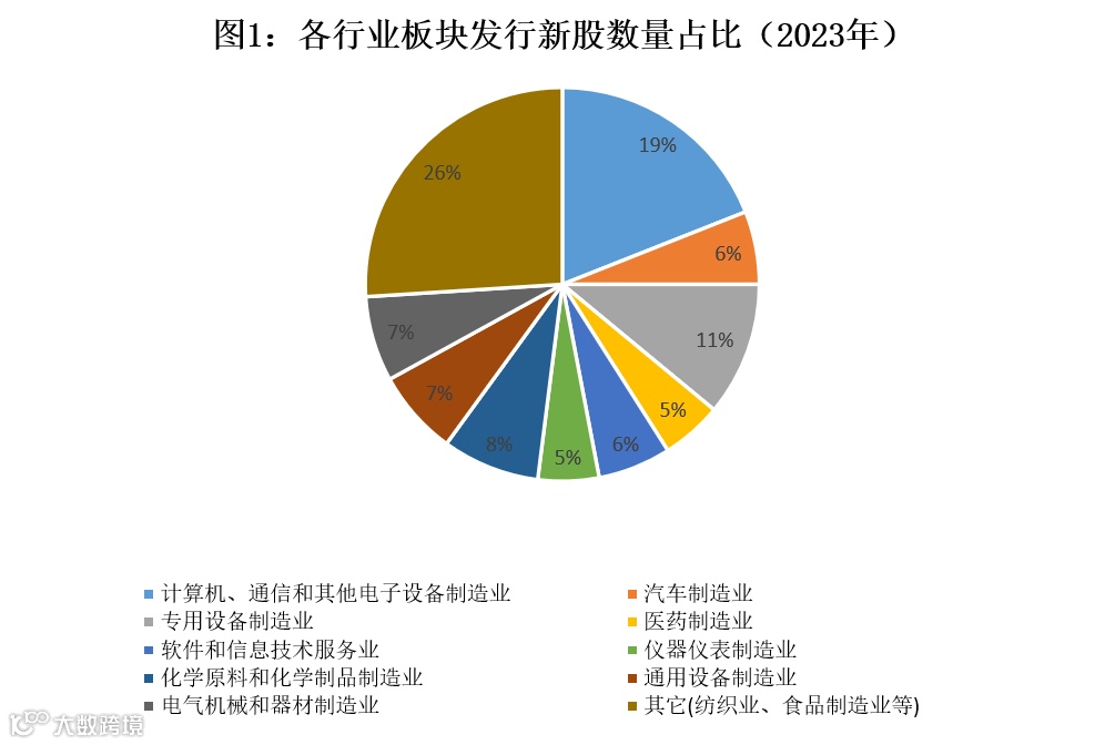 截至本周,2023年累计上市新股249只。从行业分布来看,计算机、通信和其他电子设备制造业公司数量仍占比最高,约占当年上市总数的19%。其次专用设备制造业新股为27只,约占11%;化学原料和化学制品制造业新股19只,占比约8%;电气机械和器材制造业新股18只,合计占比约7%。