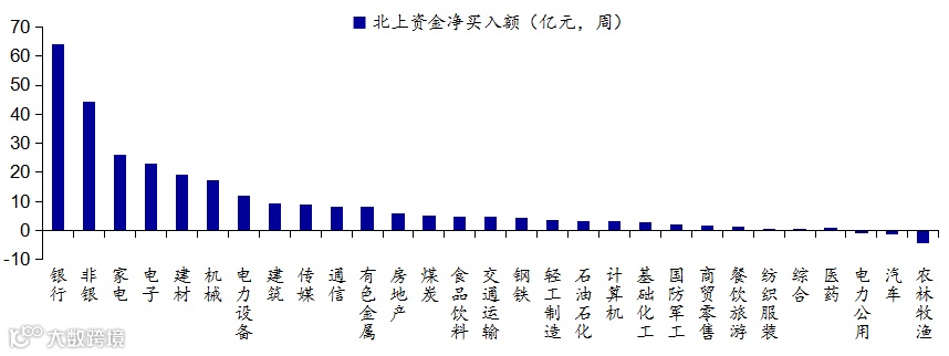 从北上资金来看,9月的第一周陆港通净流入280亿,年初至今累计净流入1496.1亿。从行业角度来看,最近一周银行净买入额最高,为64.3亿,农林牧渔净卖出额最高,为4.3亿。