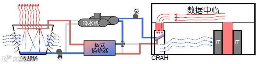 衍生的自然冷却系统-室外侧通过二级盘管进行间接自然冷却: