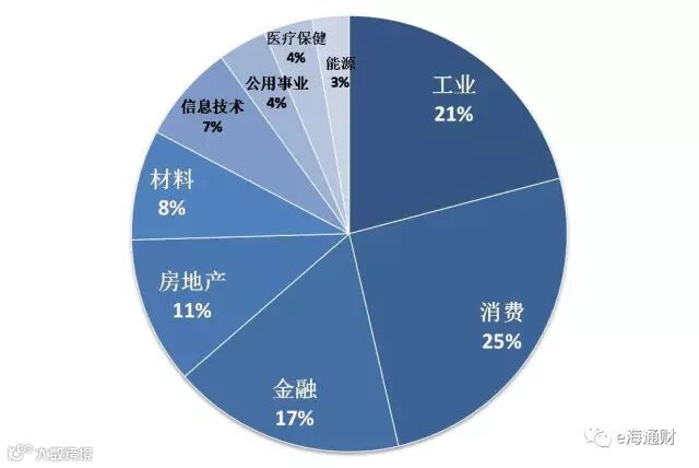龙头股中,消费、工业和金融占了半边天,其次是房地产、材料、信息技术等。