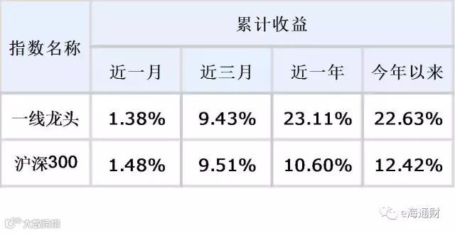 我们再和大盘比较发现,一线龙头指数收益率,在近一年里,是沪深300的两倍。
