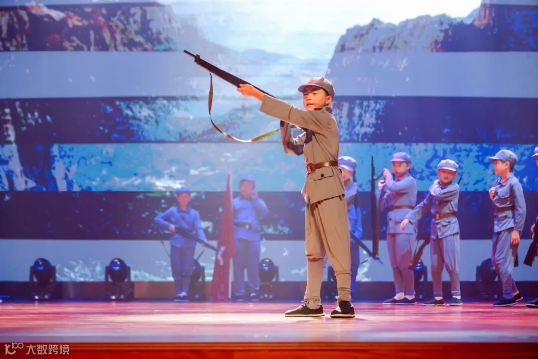 在本场演出中,第五幕《红旗承星火》专为天柱山中心小学的孩子们量身打造。创作团队深入挖掘大别山革命老区的红色历史,巧妙融入安徽传统黄梅戏元素。当孩子们用质朴的乡音唱响经典旋律,将大别山的红色记忆与皖文化的独特韵味完美融合时,台下观众纷纷屏息聆听,艺术的火花在舞台上璀璨绽放。