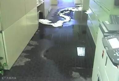 另外,我们这里还要介绍一种意外事件带来的潜在威胁。当IT管理员周末步入数据中心查看的时候发现,机房顶端的天花板已经湿透并逐渐往下渗水。渗出来的水流入到地面并不断积压。管理员发现后立即将水桶放到渗水的位置,避免水位进一步提升。
