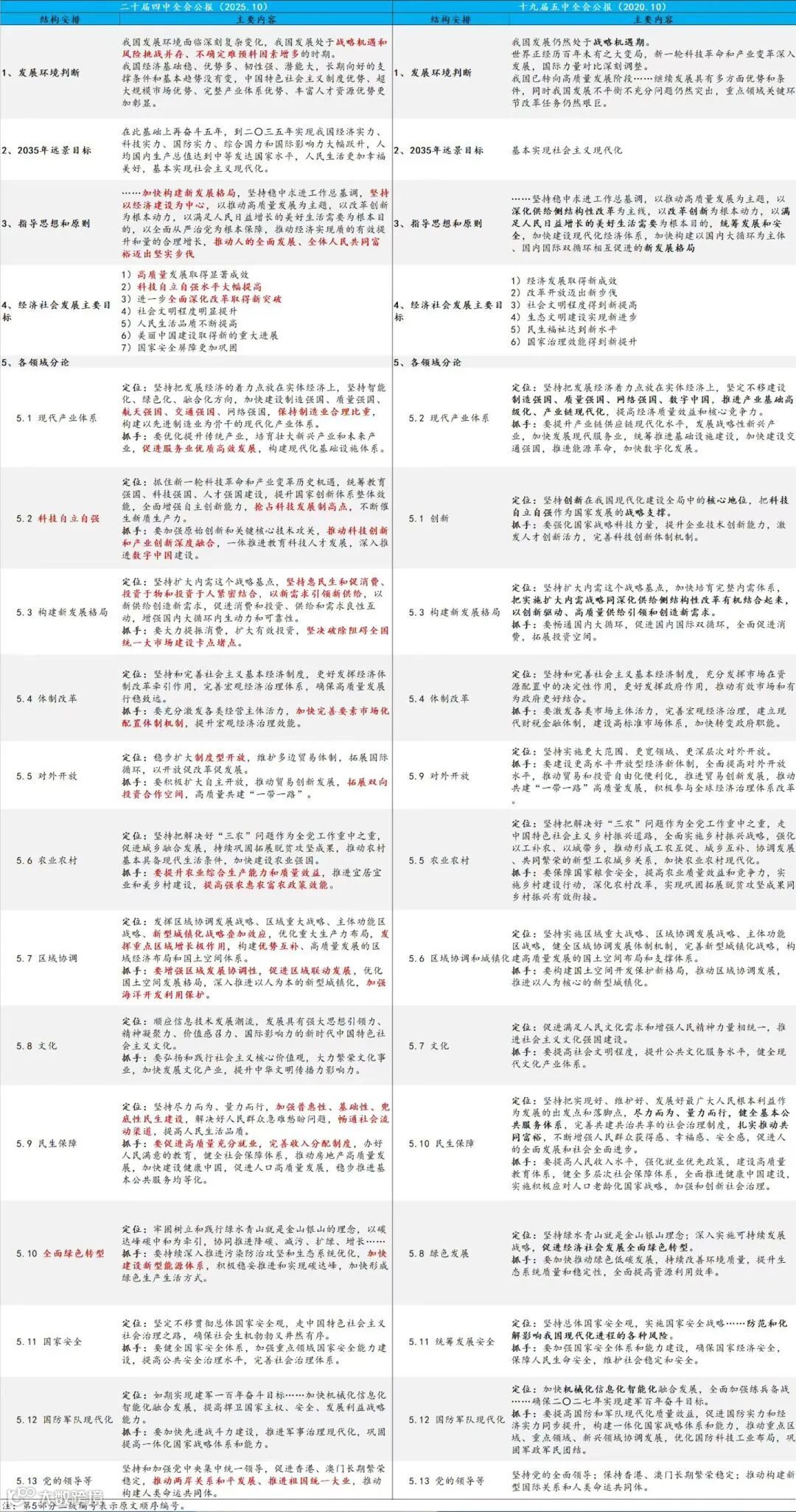 总的来看,本次会议公报围绕“十五五”规划作出战略部署更多具体政策将在后续发布的《建议(讨论稿)》全文及说明中明确,对形势判断更严峻,但经济韧性足、信心强;重点领域政策上,科技目标由“追赶”转向“领先”,产业体系注重“先进”制造和“优质”服务,政策重心向需求侧与民生倾斜,体制层面强调以深化改革和制度型开放畅通循环。