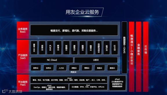 用友企业云服务有两个基本的定位,一是数字商业应用级基础设施,数字商业是社会化的服务,用友主导应用级或业务级、商业级的基础设施服务;第二个定位是企业服务产业共创平台,为企业提供服务的产业会形成生态化的平台体系。