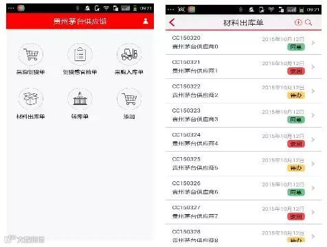 通过用友iUAPMobile,茅台对供应链项目的改造完成了系统登录、权限控制、采购到货单、到货感官检单、采购入库单、材料出库单、转库单等等的相关功能和业务逻辑的实现。