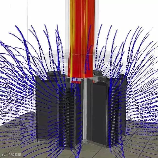 Vapor IO的蒸发系统是一个圆柱形仓, 直径 9英尺有六个楔形IT机架, 现在支持两个钱德勒市的模块。它呈圆柱形。从外形不能直接看出冷热通道,但是从内部看你会发现在一个典型的数据中心, 需要的冷空气环境和推动热排气的设备都依赖“热空气柱”的中心。圆柱体( cylinder)或“蒸汽室”(Vapor Chamber)之所以出现,是因为成排部署的机架会带来一个问题。也就是说,机架一边是热的,另一边是冷的。因此,管理这些温度差和空气流就是一件困难的任务。将这些机架重新部署成一个圈,散发出来的热量就会自动排放并封闭在一个垂直的圆柱体当中。然后在底部部署一个风扇,你可以通过这个系统控制空气的抽取速度。