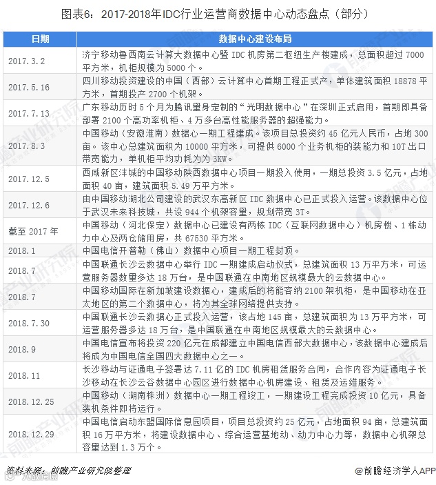 IDC(Internet Data Center,互联网数据中心)是指一种拥有完善的设备(包括高速互联网接入带宽、高性能局域网络、安全可靠的机房环境等)、专业化的管理、完善的应用级服务的服务平台。 一、运营商占主要份额但呈下降趋势,第三方市场较为分散且开始发力 我国IDC市场主体包括两类:一类是运营商为主导,一类是第三方数据中心服务商。目前,运营商占我国IDC市场主要份额但呈下降趋势,第三方市场较为分散且开始发力。根据信通院对于2017-2018年IDC市场收入的预测以及各家公司对应年度IDC相关业务收入(不含云计算),计算出2017-2018年IDC市场份额构成如下图所示。