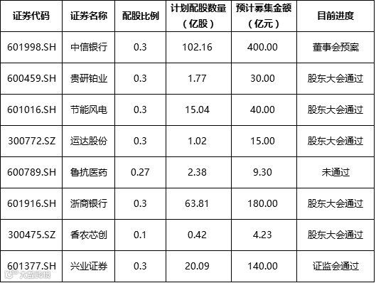 配股是上市公司融资的一种常用方式,其本身可能并不直接构成利好或利空,但对投资者的操作却有非常直接的影响。投资者当然有自主选择是否参与配股的权利,但一般我们建议如果投资者不打算参与配股,则最好在股权登记日之前卖出持有的股份;一旦经过股权登记日进入停牌阶段,投资者应当尽可能参与配股,否则可能会因为股价除权而遭受被动损失。据公开信息,目前有8家上市公司持有配股的预案。