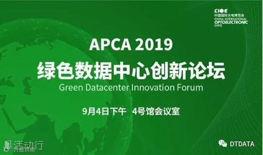 2019年9月4-7日,第21届中国国际光电博览会(中国光博会,CIOE)与APCA科技博览会将在深圳会展中心盛大举行,继2016、2017、2018年的成功召开,APCA联合DTDATA、TGGC举办的“2019亚太云端+创新产业峰会-绿色数据中心创新论坛”将在9月4日下午在会展中心四号馆会议厅进行,我们将邀请业内专家围绕“绿色数据中心”相关主题作精彩分享与交流,共建绿色生态。同时,2019 APCA AWARD颁奖将在“绿色数据中心创新论坛”上进行。欢迎大家积极参与!