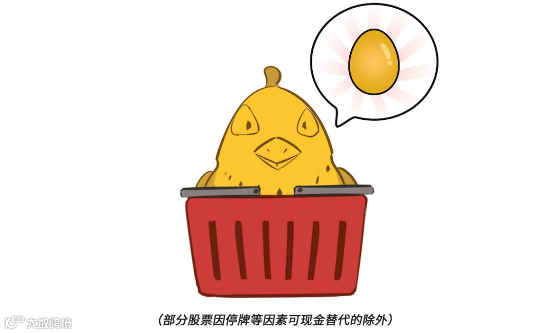 申赎要用一篮子股票来换。简单粗暴的以物换物