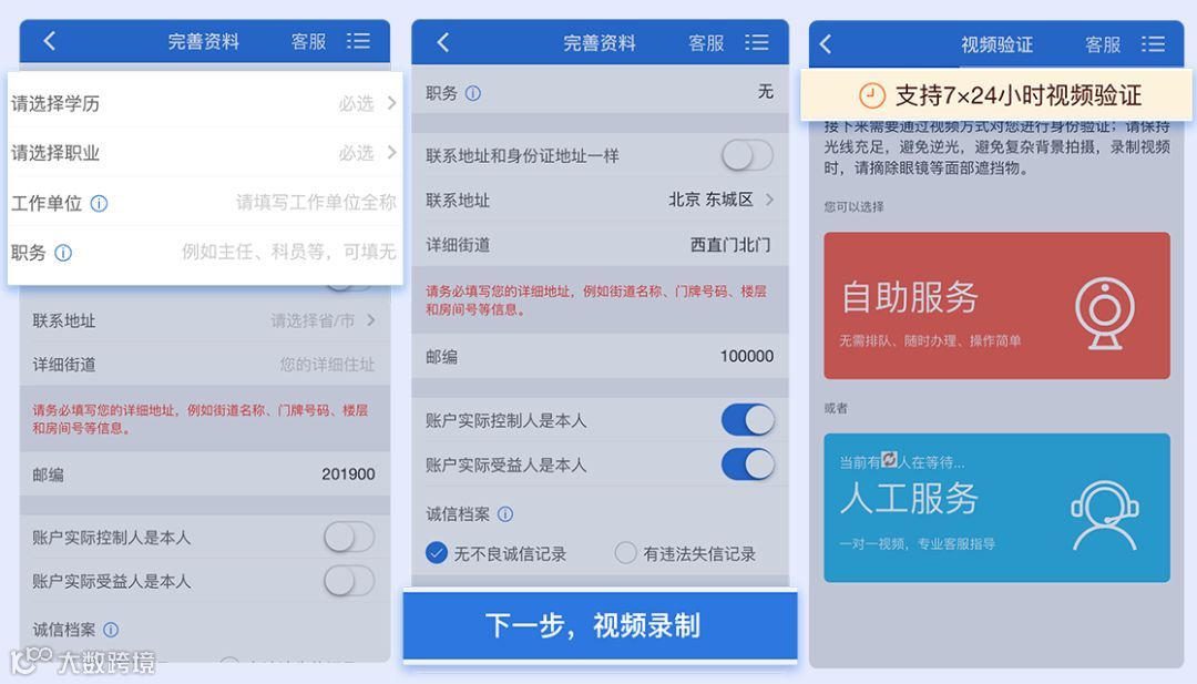 填写完成后进行“视频录制”,可选择“自助服务”或“人工服务”