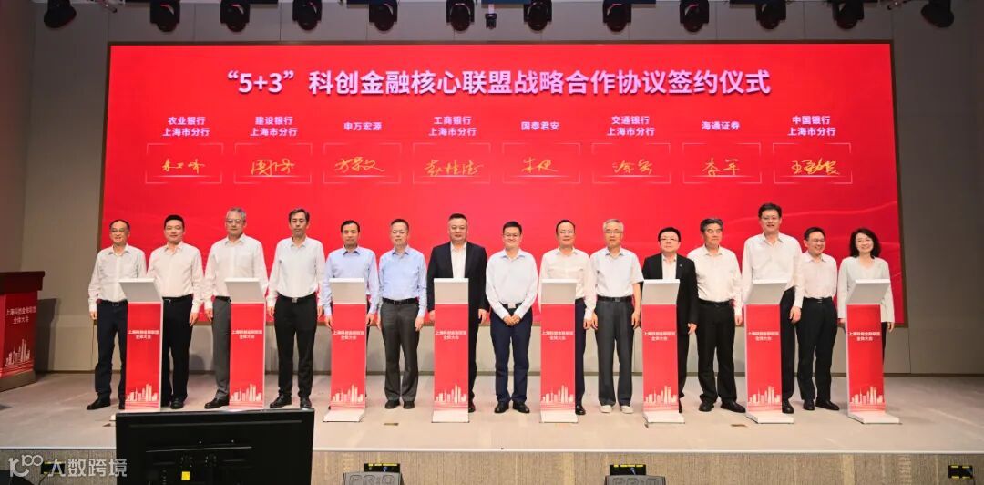 会上,工、农、中、建、交五大国有商业银行上海市分行和海通证券、国泰君安、申万宏源三大证券公司共同签署“5+3”科创金融核心联盟战略合作协议,海通证券总经理李军代表公司出席签约仪式。