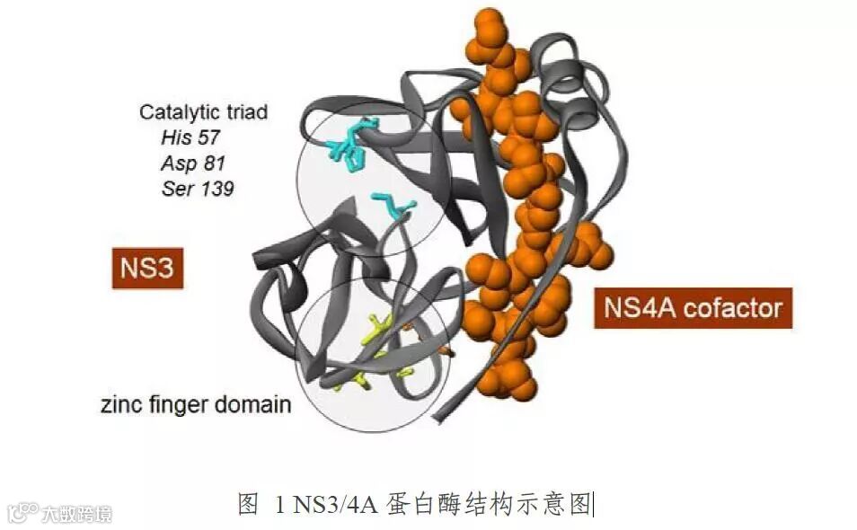 根据NS3/4A蛋白酶结构与功能分析,开发NS3/4A蛋白酶抑制可以考虑三条策略:1)抑制NS3/4A蛋白酶活性位点