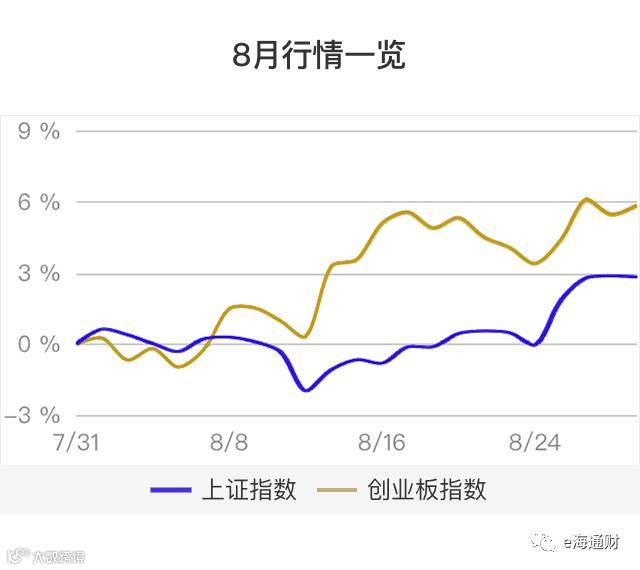 八月市场完美收官,各大指数全线上涨,创业板指大涨6.51%。国资改革、人工智能、环保、金融、资源类周期股等板块在本月均有强势表现。伴随着资本市场国际化及金融监管趋严态势,价值投资越发受到重视。