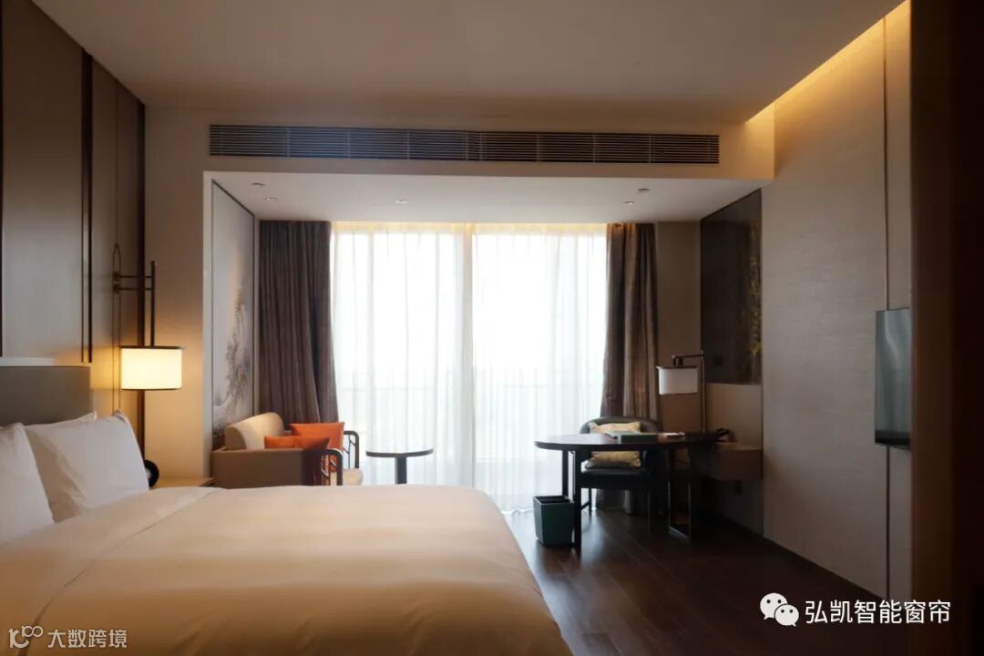 美国建筑师沙利文曾经讲过:“形式由功能而来”。酒店内,传统艺术与文化、中式园林的光与影元素总能给顾客带来意识和视觉上的冲击。同样的,酒店的居住体验等也要做到感官上的享受。因此酒店的窗控系统的设计也要协调统一。弘凯智帘总能将现代科技与装饰艺术进行完美融合。