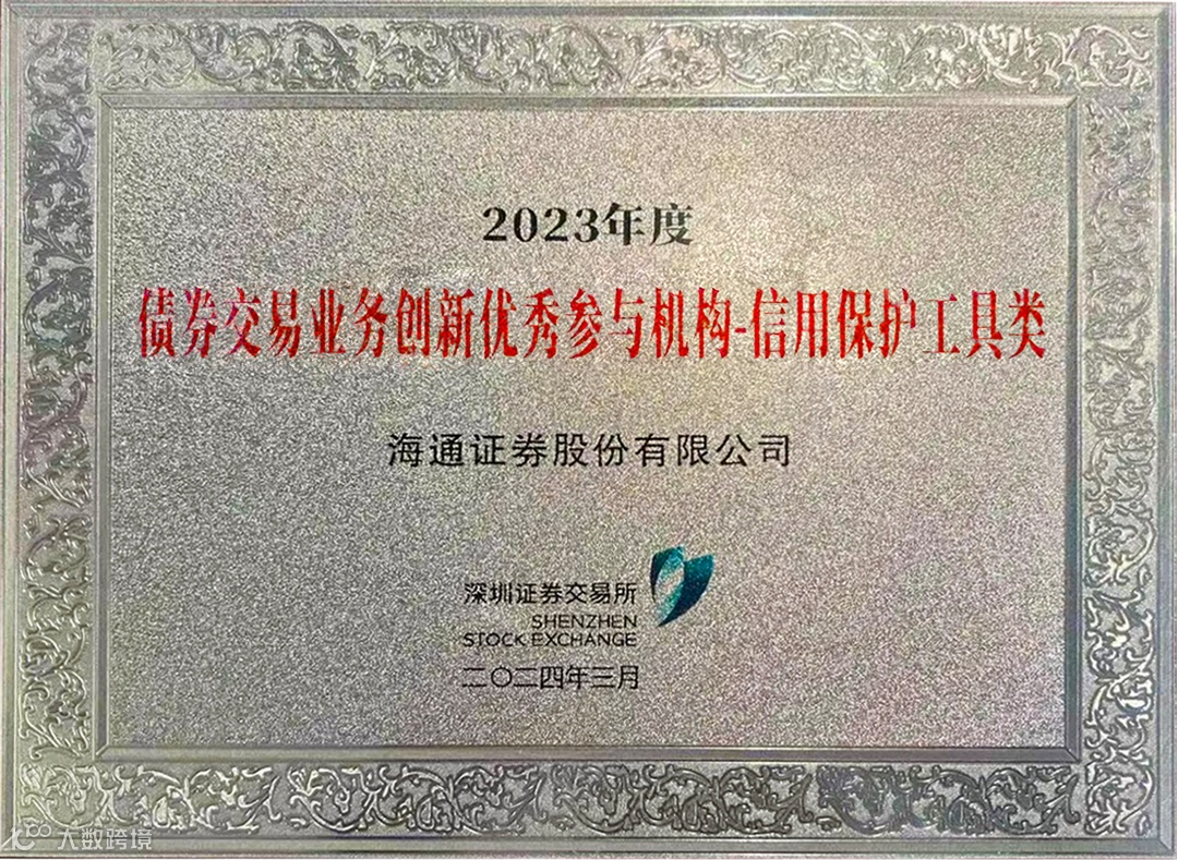 近日,深圳证券交易所(以下简称深交所)对2023年度债券市场优秀参与机构与个人进行表彰,海通证券荣获深交所“2023年度固定收益创新产品优秀中介机构”“2023年度优秀利率债承销机构-券商类”和“2023年度债券交易业务创新优秀参与机构-信用保护工具类”奖项,上海债券融资部、深圳债券融资部、固定收益部和资本市场部的6名员工荣获优秀个人称号。