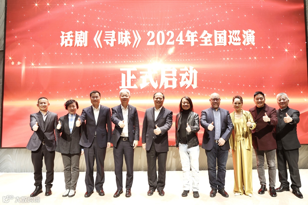 周杰、童建平、裴长江与话剧主创人员共同参加《寻味》2024年全国巡演启动仪式。