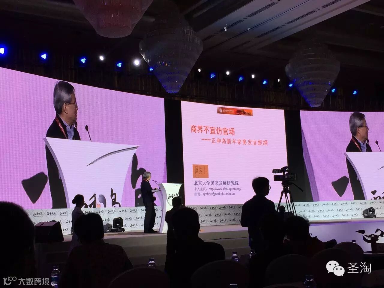 中国经济学家、北京大学教授周其仁在会上作了未来经济发展的报告,深入分析了未来几年中国经济的发展趋势与机会,并给与会企业提出告诫,告诫各企业主:商界不宜仿官场。
