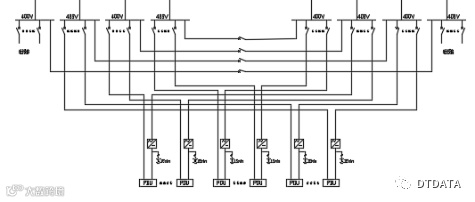 市电接入:云计算中心采用双市电接入法,由来自不同变电站的20KV供电线路进行供电,采用两个独立供电分界室进行变压输出。