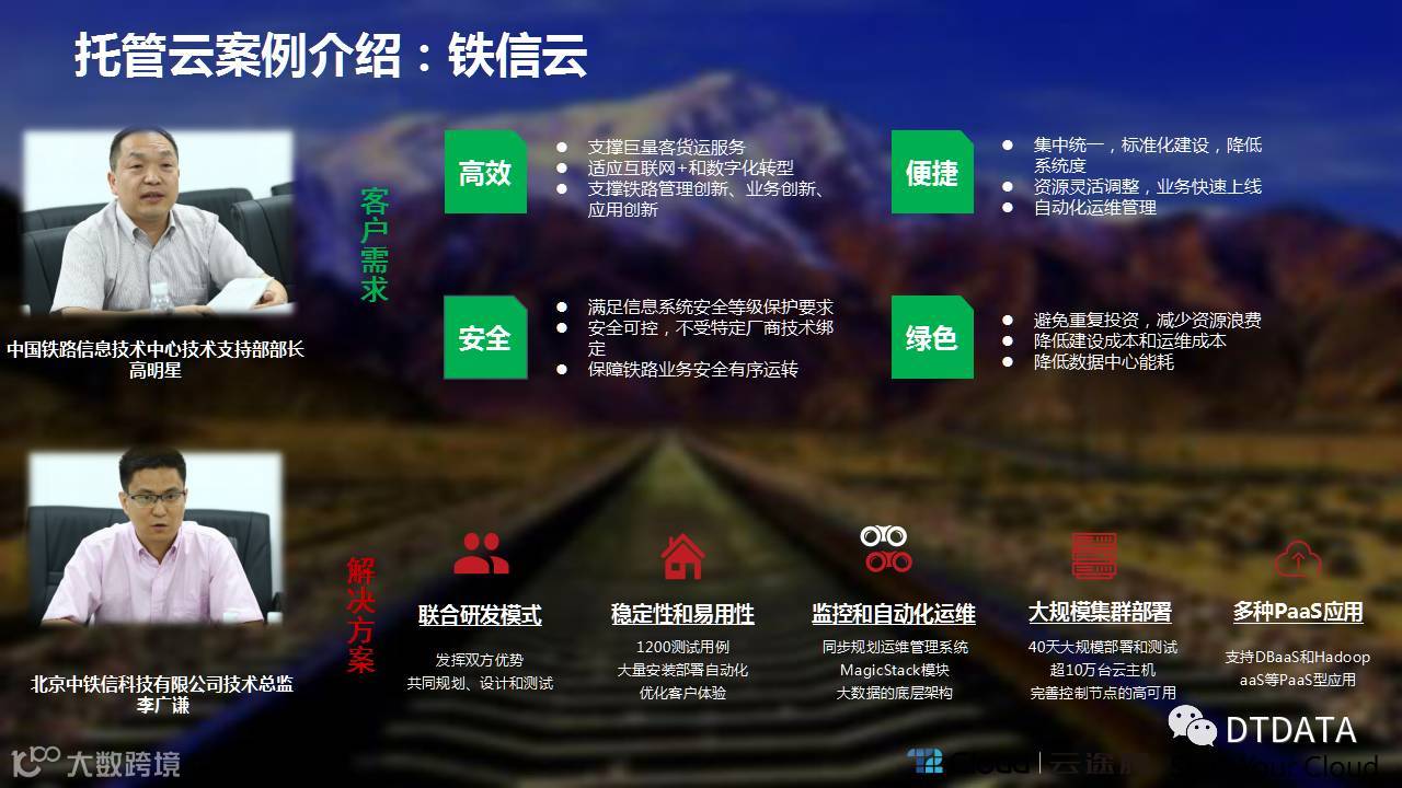 云途腾创始人刘江涛博士在第九届2017下一代数据中心峰会上带来主题分享《数据中心云化实践经验与未来展望》,他表示:我们不得不直视第三方IDC企业面临的困境,云计算产业爆发,IDC运营商纷纷转型IaaS,“IDC云化是必然趋势”,而具备公有云的服务品质,私有云的可控安全特点的托管云可以成为混合云模式之外的新模式。