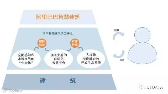 最新发布的智慧建筑设计标准中将智慧建筑定义为“以建筑物为平台,基于对各类智能化信息的综合应用,集架构、系统、应用、管理及优化组合为一体,具有感知、传输、记忆、推理、判断和决策的综合智慧能力,形成以人、建筑、环境互为协调的整合体,为人们提供安全、高效、便利及可持续发展功能环境的建筑。”如图所示,阿里巴巴的智慧建筑正是在国标定义的智慧建筑基础上,重新诠释了未来智慧建筑的三大典型特征,并重构了对未来智慧建筑的定义。
